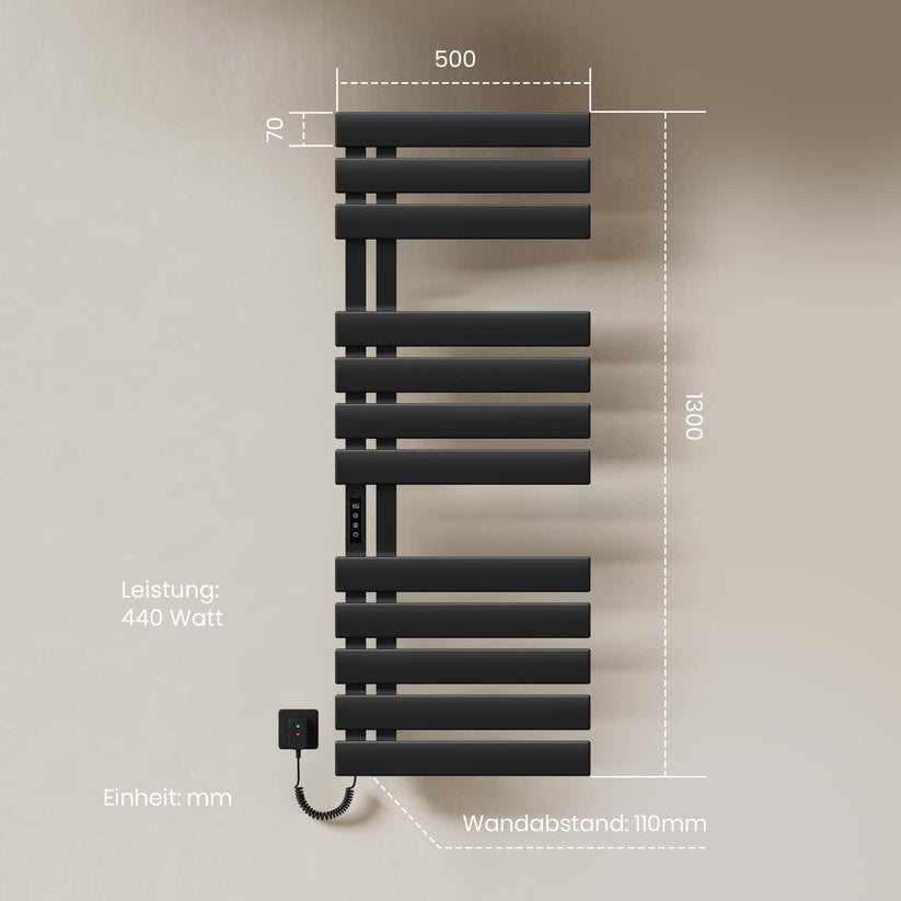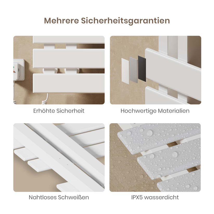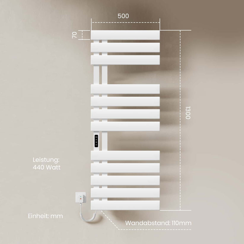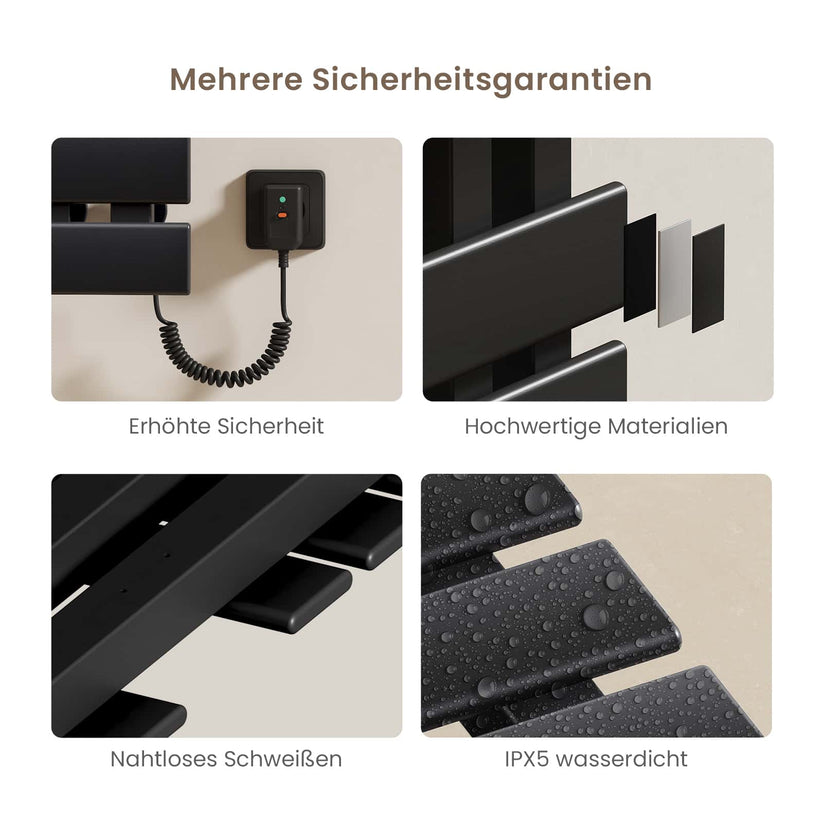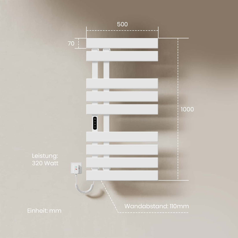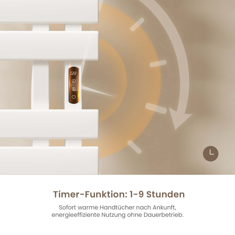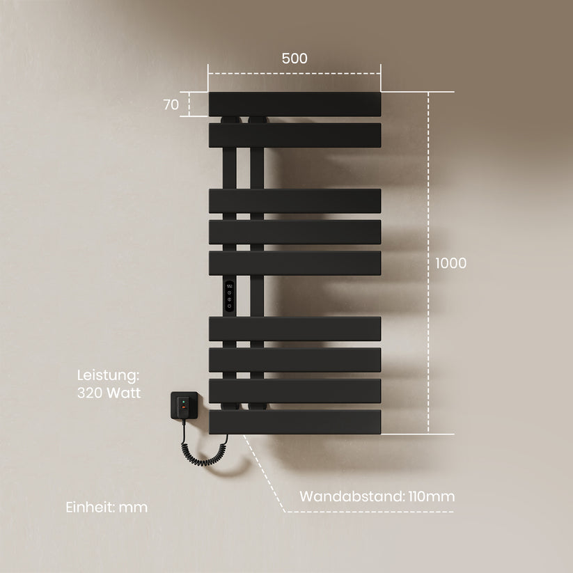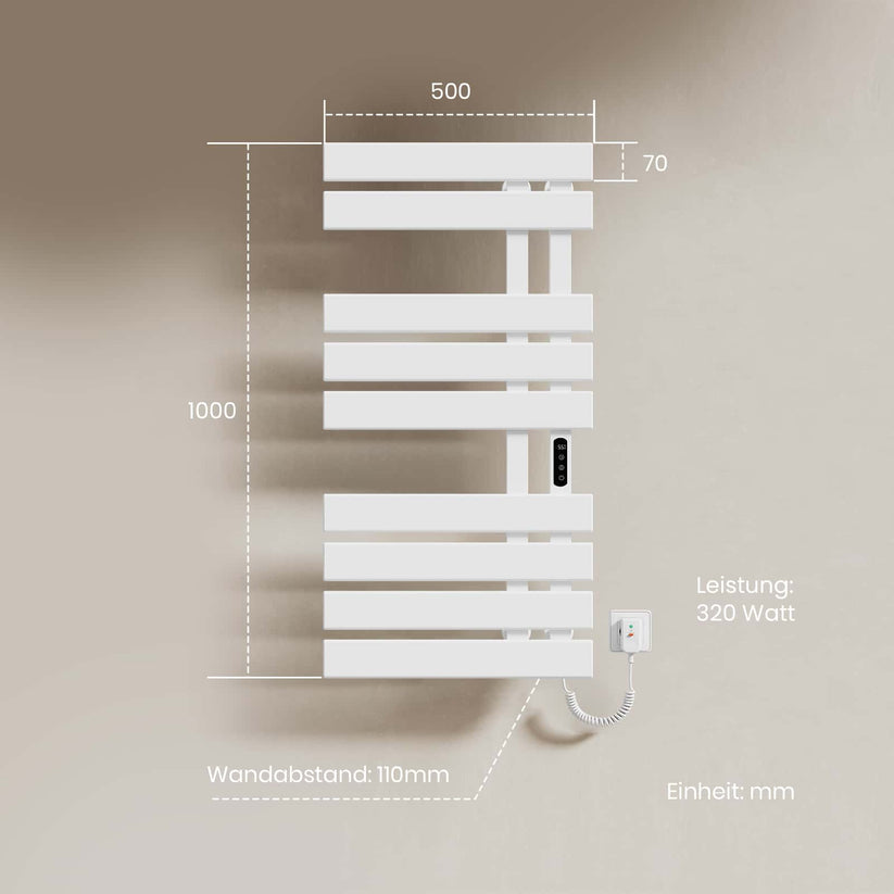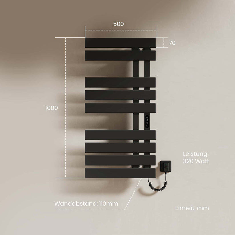 Dieser elektrische Handtuchheizkörper trocknet Handtücher und Kleidung schnell und effizient mit moderner Kohlefaser-Technologie.