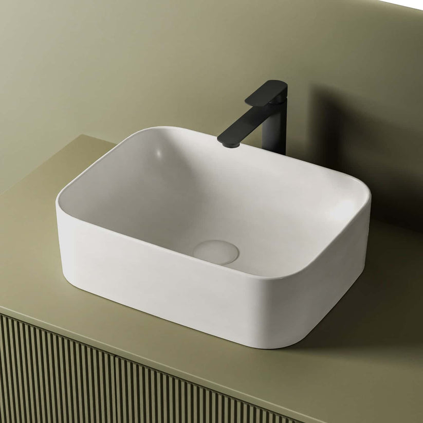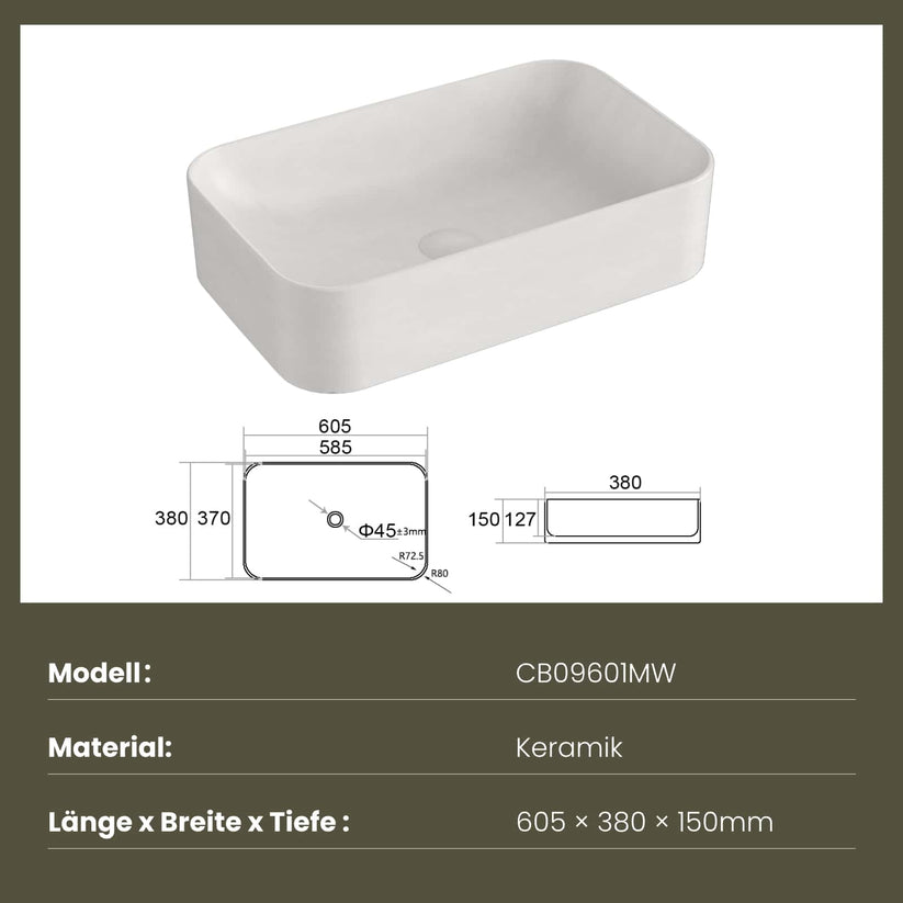 Dieser elegante Aufsatzwaschtisch bringt mit seiner weichen Formgebung modernen Minimalismus ins Badezimmer. Robuste Verarbeitung und pflegeleichte Oberfläche machen ihn ideal für den täglichen Gebrauch.