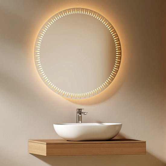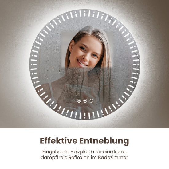 Runder LED-Badspiegel mit Touch-Steuerung, Antibeschlag & dimmbarem Licht