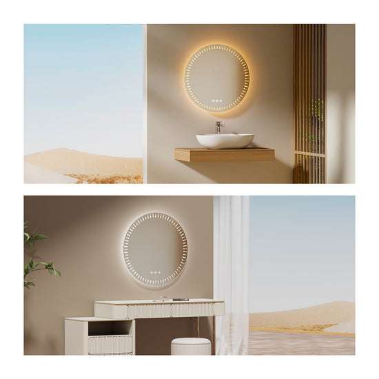 Dieser runde LED-Badspiegel kombiniert stilvolles Design mit praktischer Funktionalität. Die Touch-Bedienung ermöglicht flexible Lichtsteuerung, während die Antibeschlag-Funktion für klare Sicht sorgt – selbst in feuchter Umgebung.