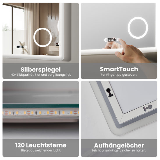 - Schlaue 3-in-1-Touch: Mit dem SmartTouch 3.0 des EMKE Badezimmerspiegels können Schalter + 3 Lichtfarben + Dimmen mit einem 'Touch' erreicht werden, sodass Badspiegel dich mit dem einfachsten Optik alle deine Wünsche erfüllen.