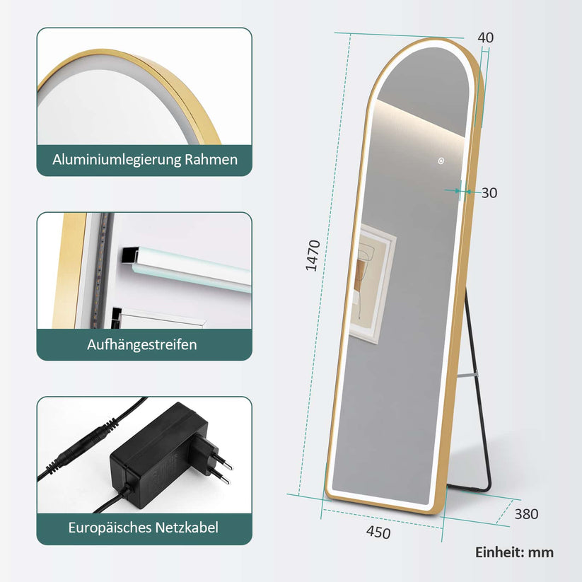 Ganzkörperspiegel mit LED-Beleuchtung FM06