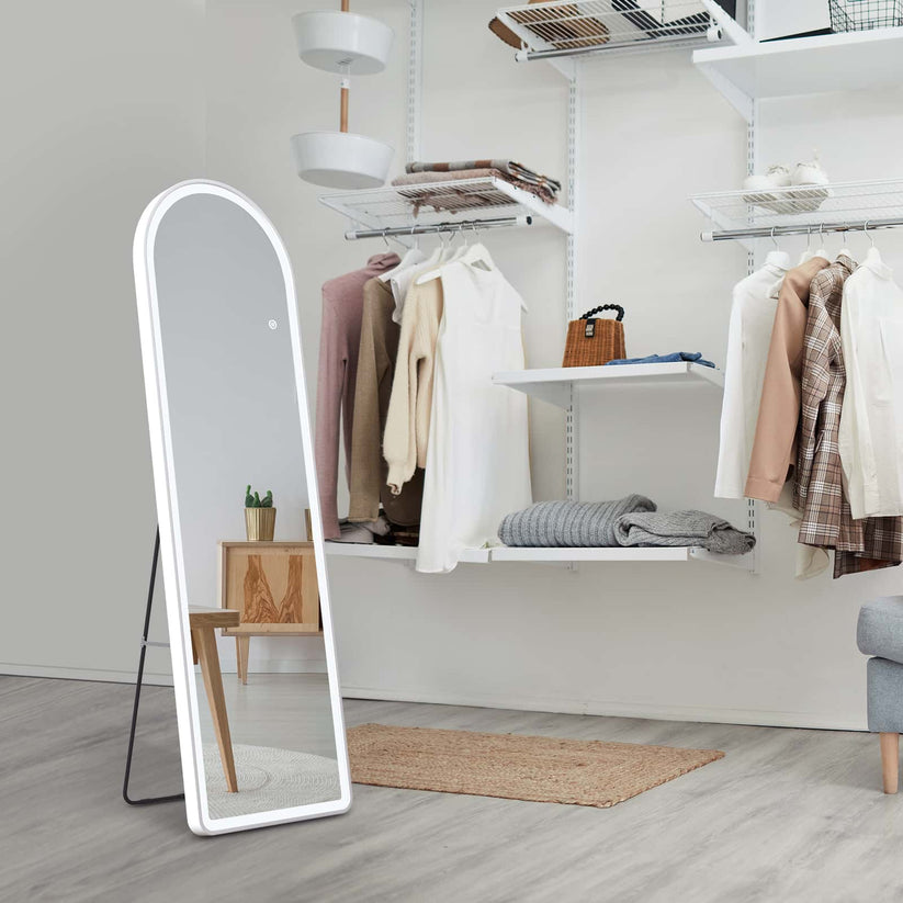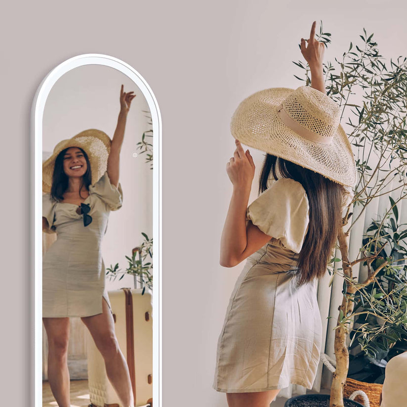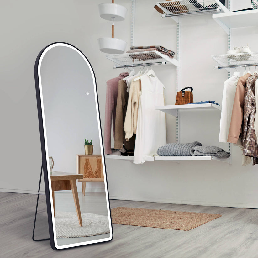 Dieser moderne LED-Ganzkörperspiegel kombiniert stilvolles Design mit intelligenter Lichtsteuerung – ideal für Schlafzimmer, Ankleide- oder Eingangsbereiche.