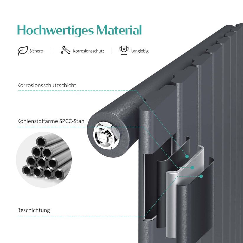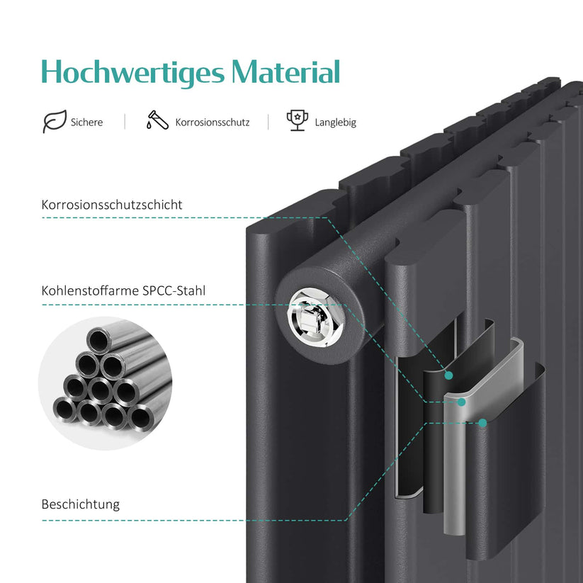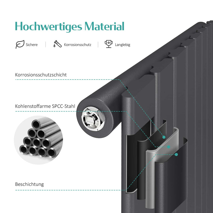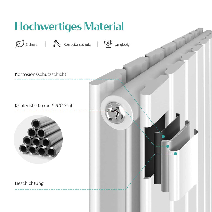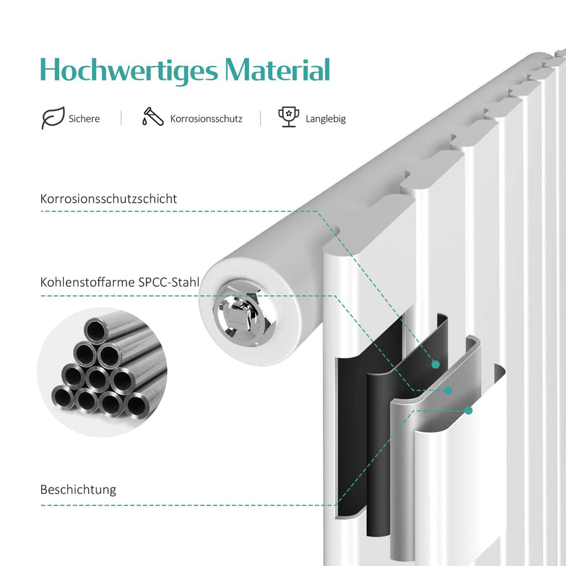 - Hochwertige Verarbeitung: Der Heizkörper ist aus fortschrittlicher Schweißtechnik und hochwertigem SPCC-Stahl gefertigt. Korrosionsbeständig und längere Lebensdauer.