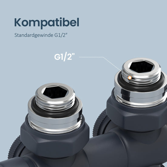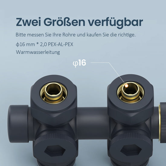Hinweis: Für 15 mm Rohrleitungen kontaktieren Sie bitte den Kundenservice. Nur geeignet für Zweirohr-Heizsysteme.