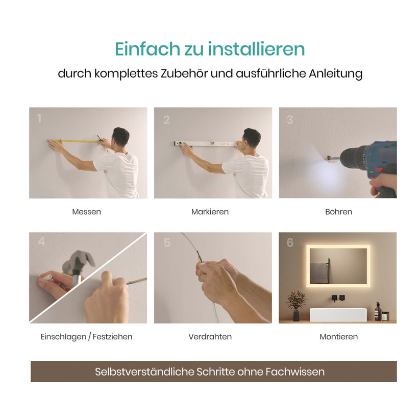 - Erhältlich in diversen Maßen und Varianten (Wandschalter/Touch‑Button, Anti‑Beschlag, Digitaluhr)
