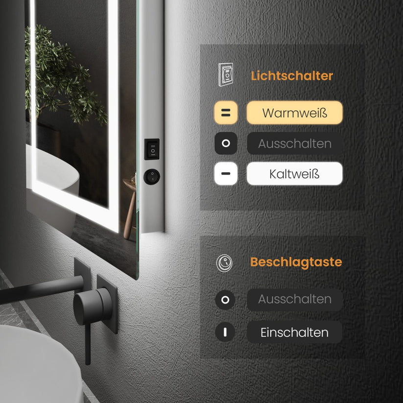 Spiegelheizung, Farbtemperatur einstellbar und Speicherfunktion