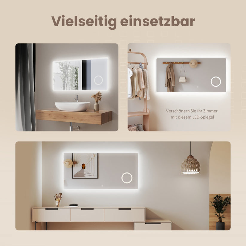 Dieser rahmenlose LED-Spiegel vereint modernes Design mit praktischen Funktionen und sorgt für klare Sicht in feuchten Räumen. Sein 4 mm Silberspiegel und energiesparende LEDs bieten langlebige Beleuchtung und stilvolle Akzente im Bad oder Wohnzimmer.