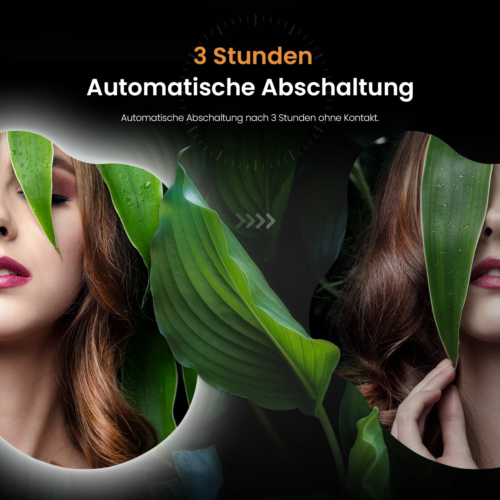 Spiegelheizung, Farbtemperatur einstellbar, Helligkeit einstellbar, Speicherfunktion und Automatische Abschaltung nach 3 Stunden