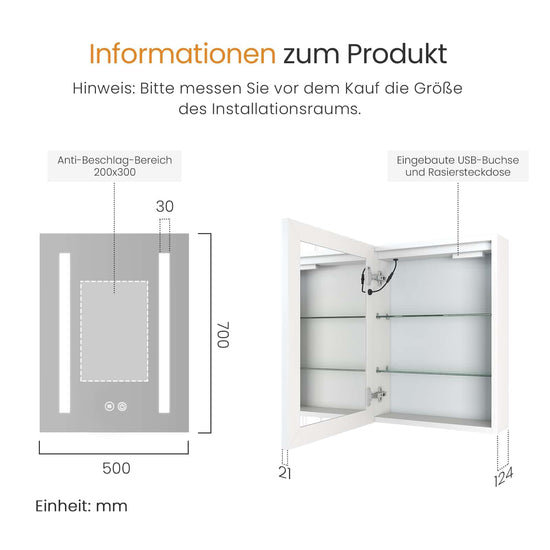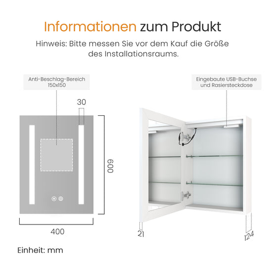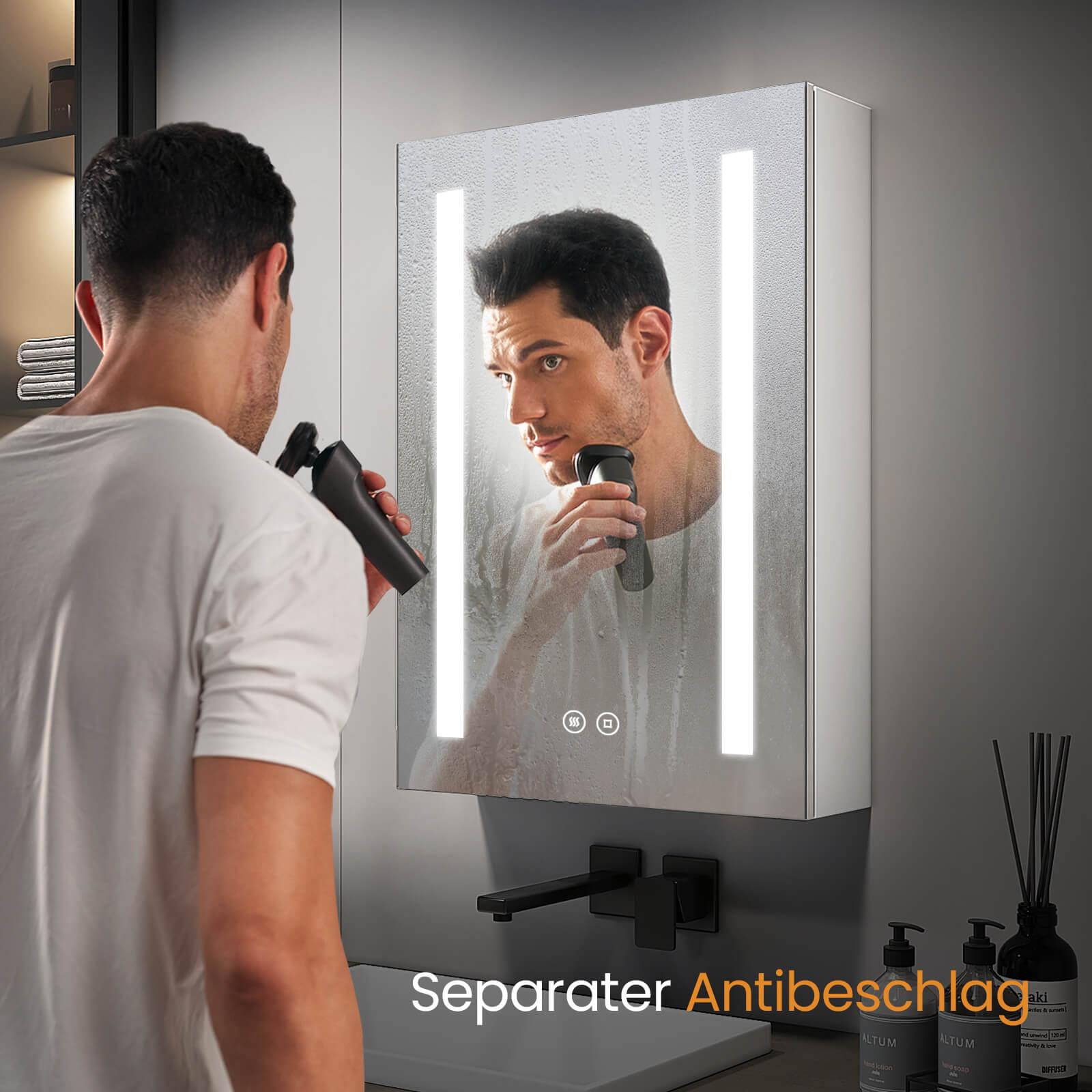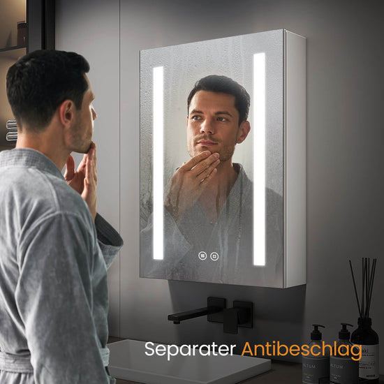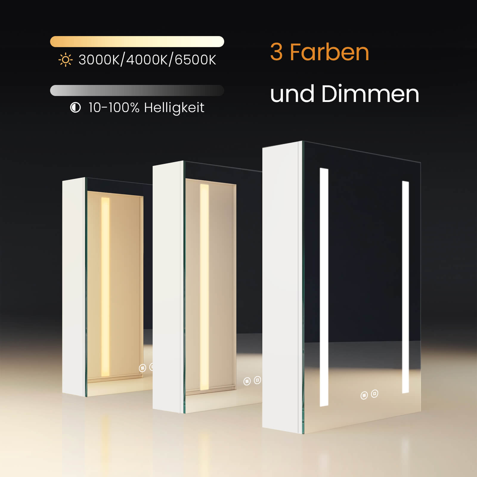 Spiegelschrank mit LED-Beleuchtung, Steckdose & Soft-Close, 1 Tür links angeschlagen