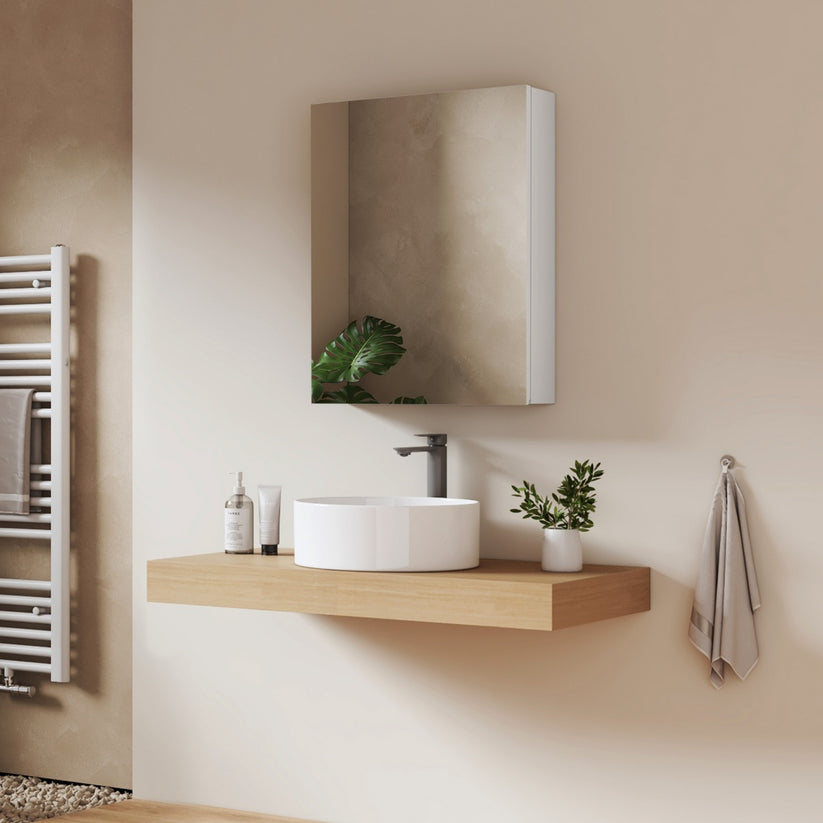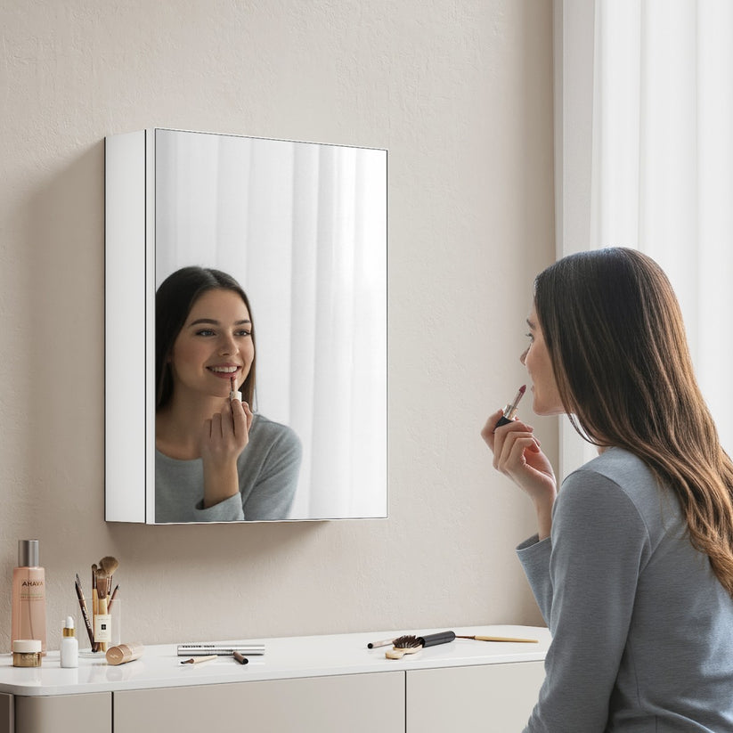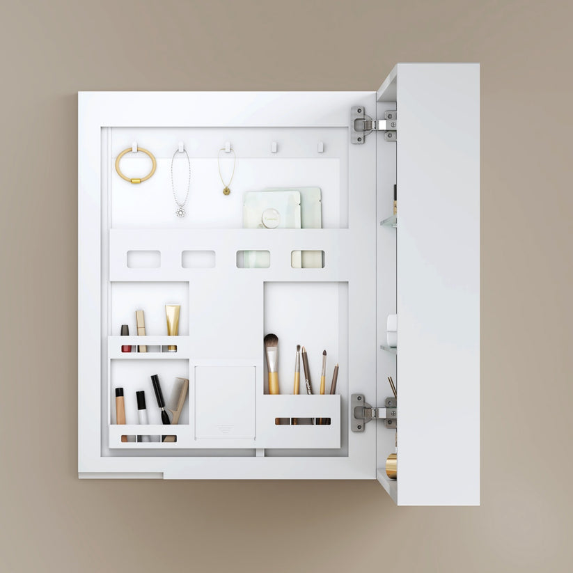 - Integrierter Stauraum hinter der Spiegeltür