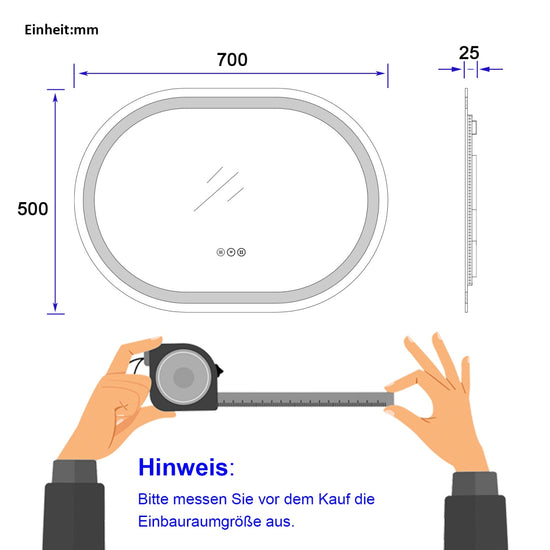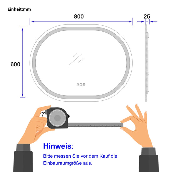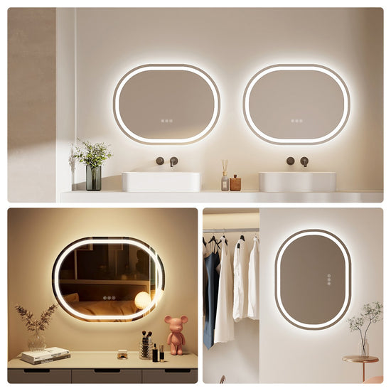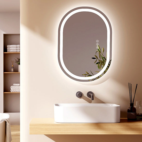 Ovaler LED-Badspiegel mit Touchschalter & Anti-Beschlag-Funktion