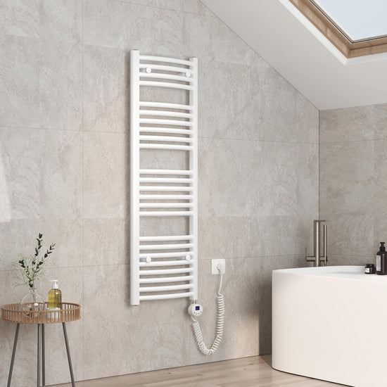 Dieser elektrische Handtuchheizkörper sorgt für angenehm warme Handtücher und hilft, Feuchtigkeit im Bad schneller zu reduzieren – ideal für ein hygienisches Raumklima. Die Temperatur und Heizzeit lassen sich bequem über das integrierte Thermostat einstellen.