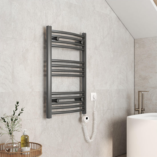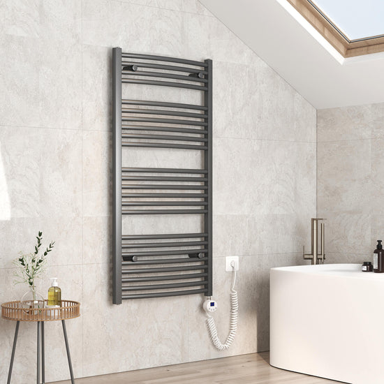 Elektrischer Handtuchheizkörper mit Thermostatsteuerung, für Wandmontage – Weiß oder Anthrazit
