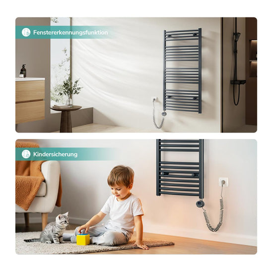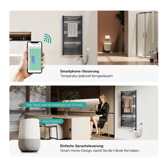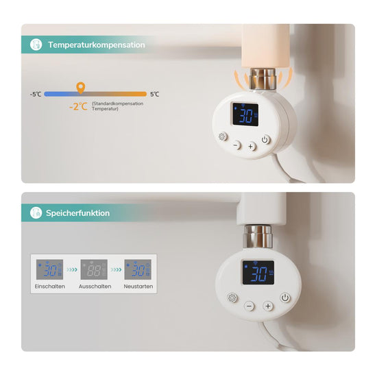 - Mit Thermostat – Heizzeit & Temperatur individuell programmierbar