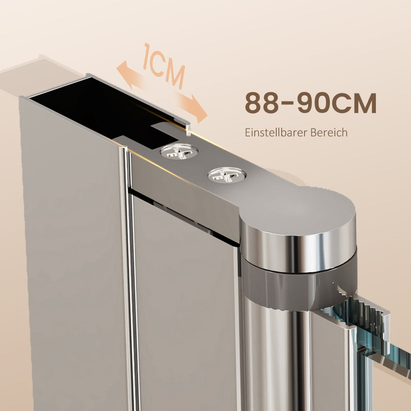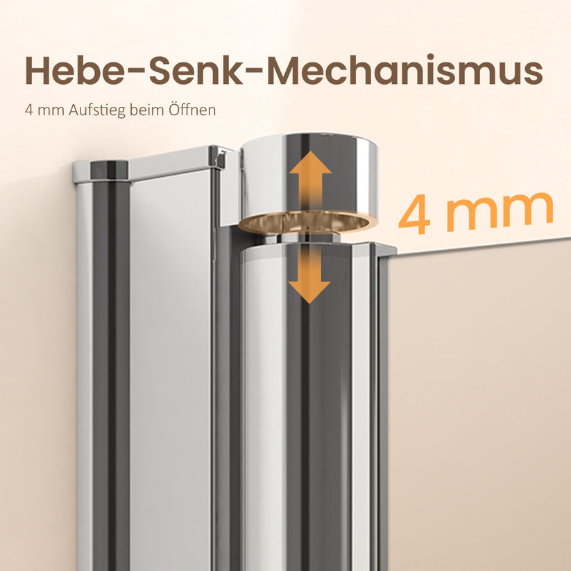 Eck-Duschkabine mit faltbarer Drehfalttür und Hebe-Senk-Mechanismus