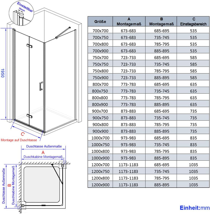 - Maße: erhältlich von 75×75 cm bis 120×120 cm, Höhe 185 cm