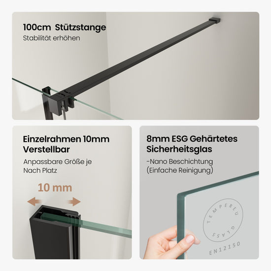 - 8 mm ESG-Sicherheitsglas, CE- & EN 12150-zertifiziert